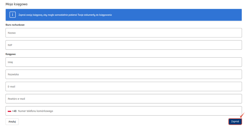 Po pierwszym zalogowaniu się do systemu, księgowa przechodzi na stronę: