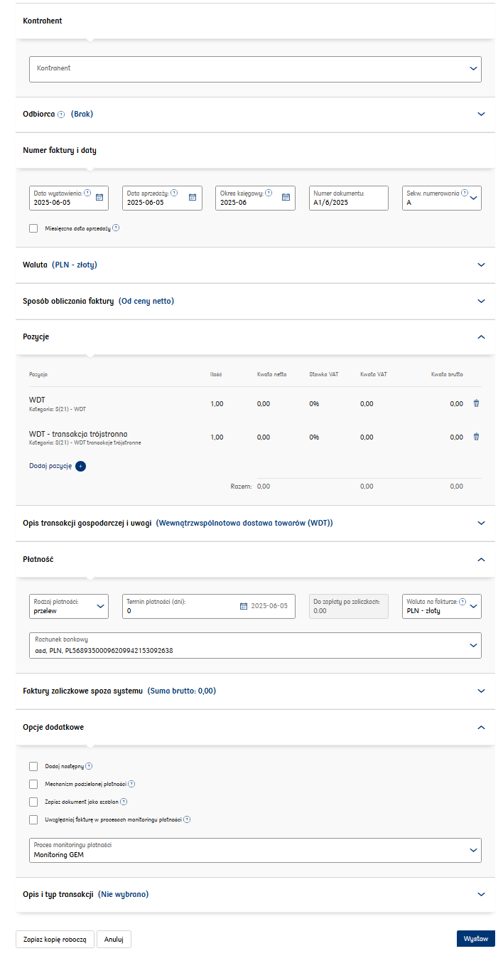 - Wewnątrzwspólnotowa Dostawa Towarów (WDT);
