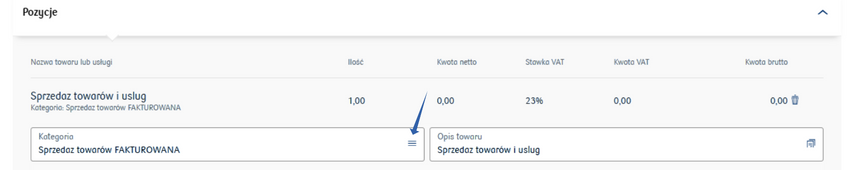 - The options are available after clicking on the blue icon in the Kategoria (category) field.