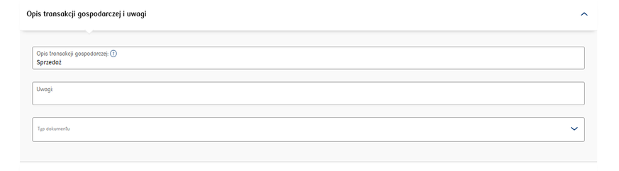 - complete the description of the business transaction (Opis transakcji gospodarczej),